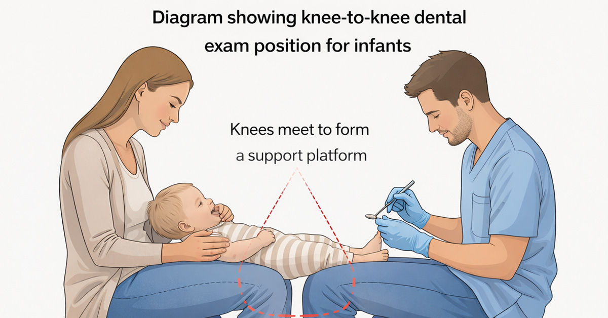 For infants and young toddlers, pediatric dentists commonly use the “knee-to-knee” or “lap-to-lap” examination technique.